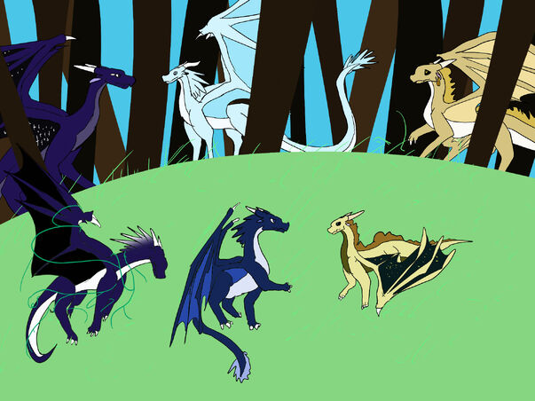 They reached the rainforest at midnight. Winter's sharp IceWing eyes were guiding him. Two bright moons were shining above them. Soon, they came to the NightWing village. Deathbringer was congratulating him.